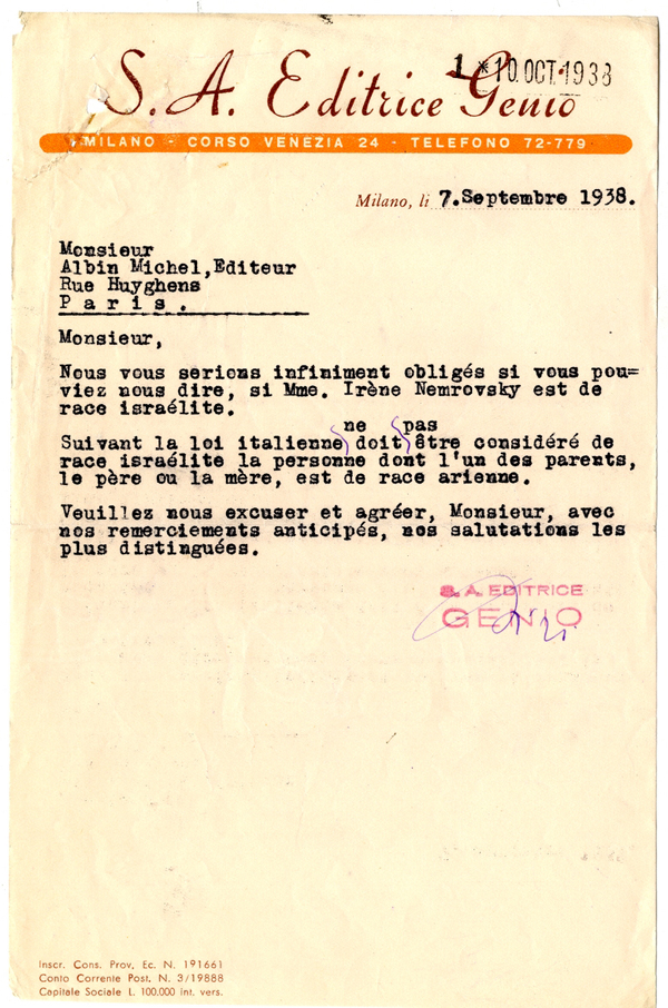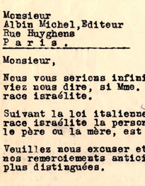 Brief der Ditionen Genio (Mailand) Albin Michel,