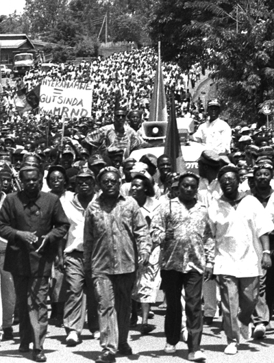 Die Mobilisierung der Hutu-Bevölkerung wurde von einer heftigen Propaganda gegen die "Feinde" des Habyarimana-Regimes begleitet. Diese organisierte Propaganda wird von allen vorhandenen Medien verbreitet: Zeitungen, Radios, Fernsehen, politische Versammlungen... Während die ruandische Gesellschaft von keiner religiösen, sprachlichen oder territorialen Rivalität abgeschottet ist, trägt der Hinweis auf eine imaginäre defensive Kriegsführung seit der Unabhängigkeit und die ständige Verwendung einer verleumderischen Terminologie zur Qualifizierung der Tutsi dazu bei, die Massen zu galvanisieren.