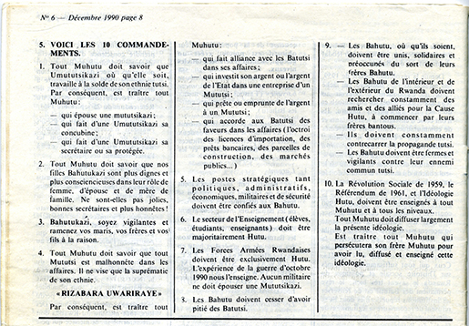 Die 10 Gebote der MRND gegen die Tutsi ( Kangura Nr. 6)