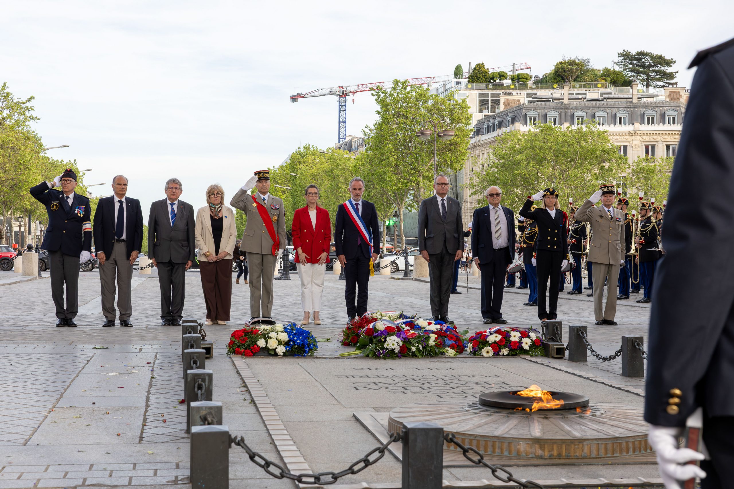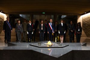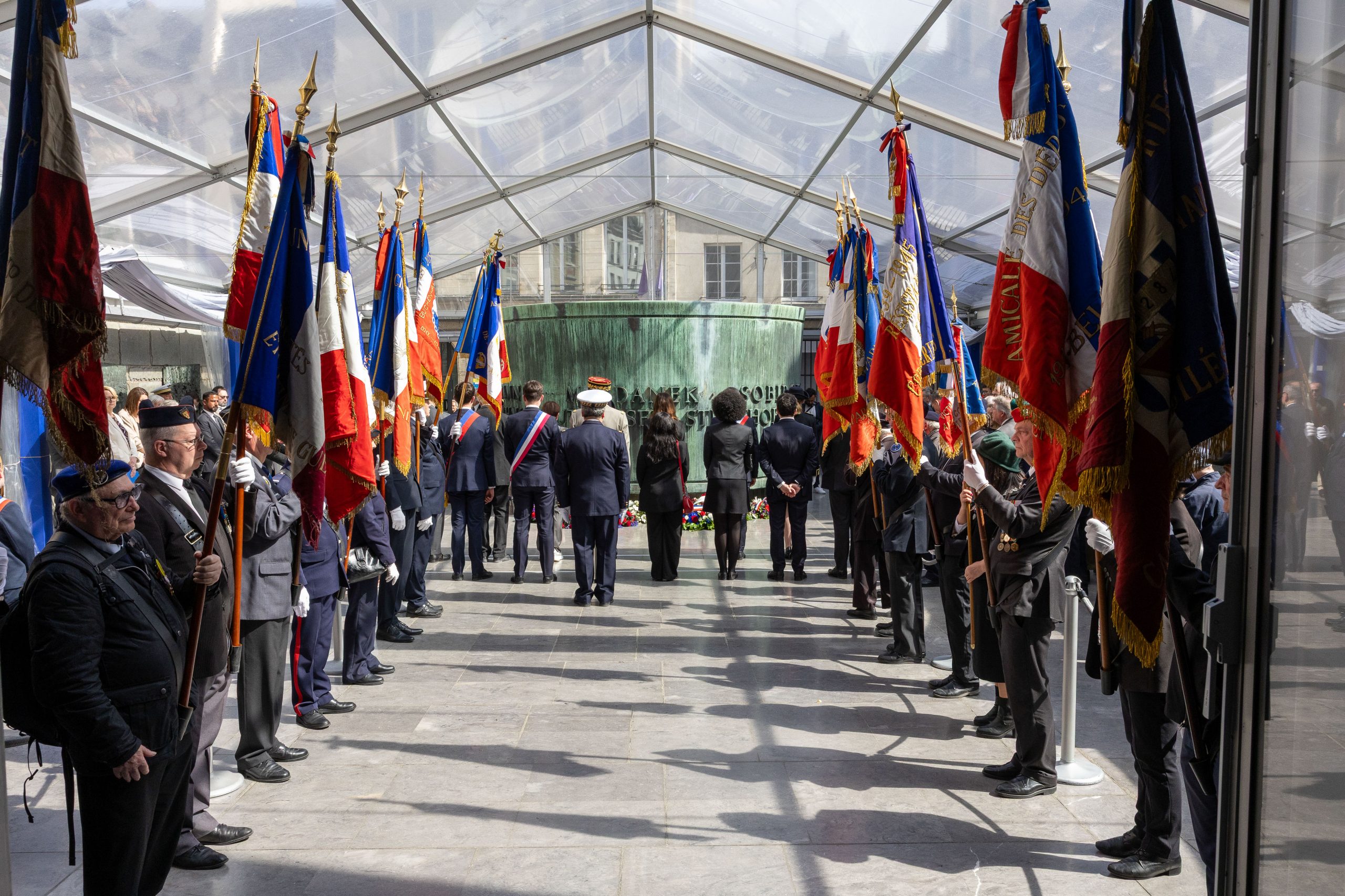 A tribute was first paid at the Shoah Memorial, then at the Memorial of the martyrs of the deportation. The commemoration ended with the rekindling of the flame of the Unknown Soldier at the Arc de Triomphe by Aurore Bergé.